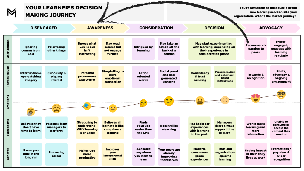 So what can you do to keep front of mind with your people and ensure that they are perpetually engaged with your learning? Consider using the decision making journey, the new saviour to your engagement issues (newsflash: it’s still Marketing for Learning®).