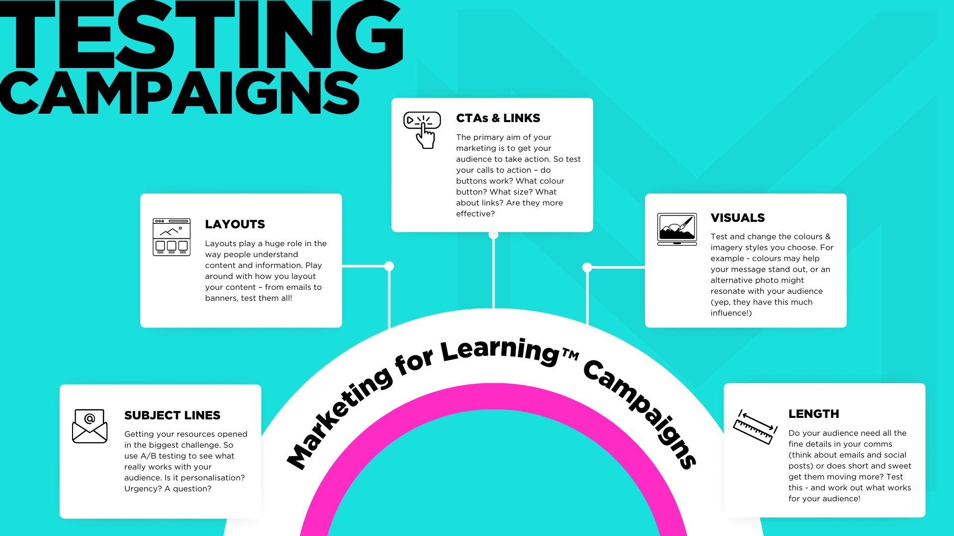 So the next time you let testing your marketing for learning campaigns fall on the back burner – think again. Test your campaigns, learn what works for your audience and boost the effectiveness of your future marketing endeavours.